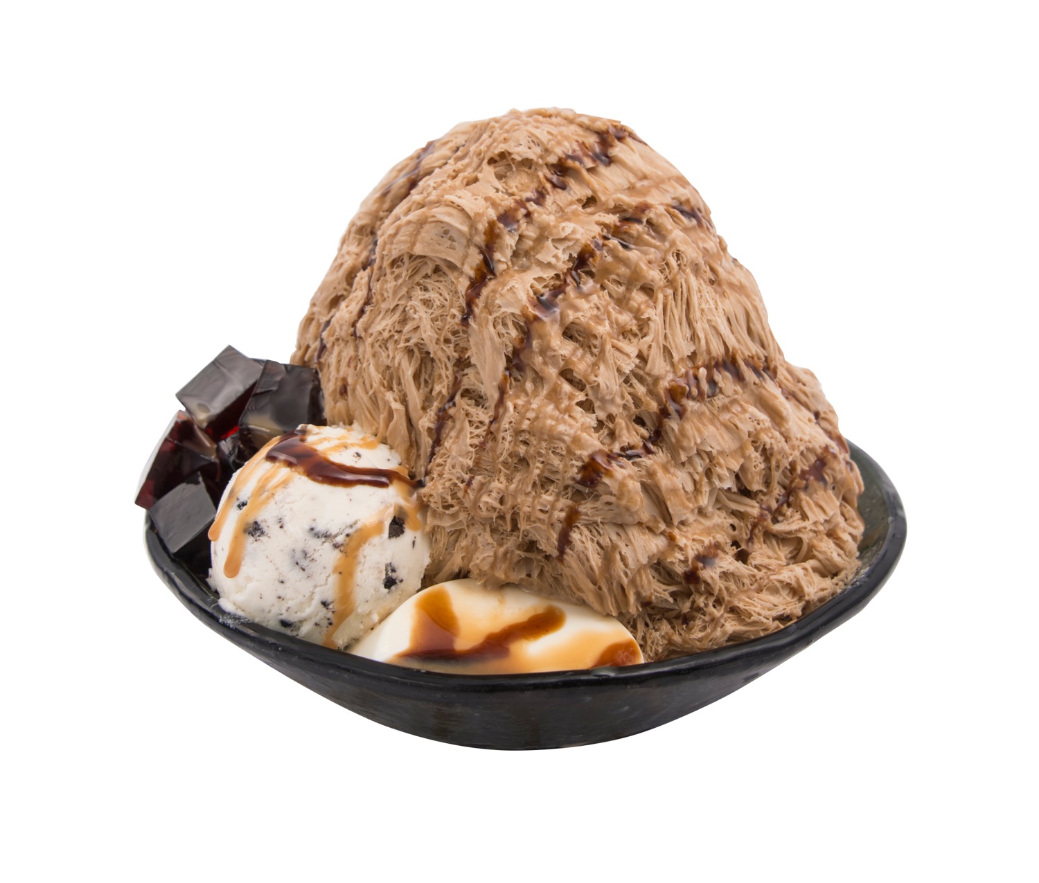 コーヒーの香ばしい香りを濃縮したコーヒーアイスブロックを削り、弾力のあるゼリー、パンナコッタとクッキークリームアイスをトッピング。ビターなコーヒーシロップをかけたメニュー。