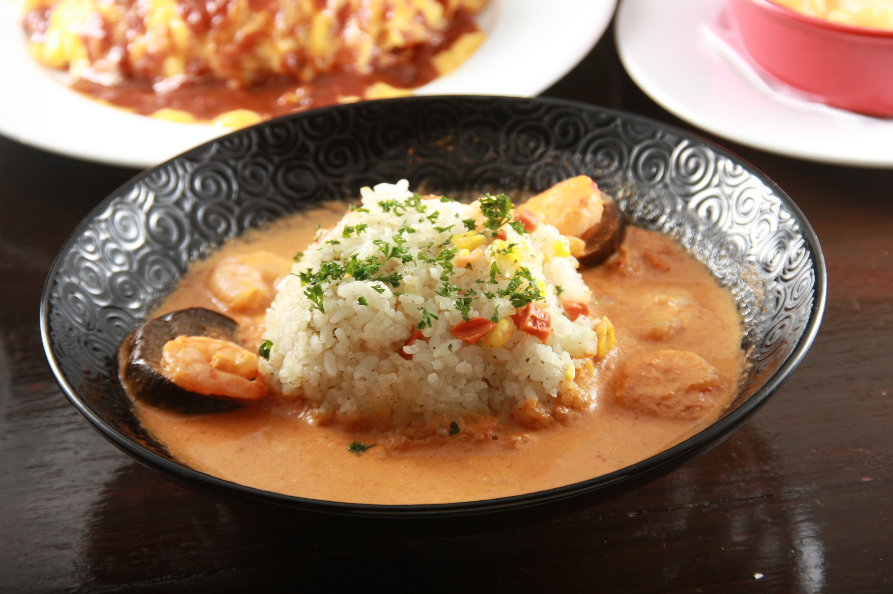 【レッドシュリンプタイカレー】(1070円) 「尾西のえびピラフ」をアレンジしています