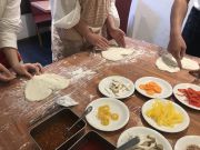 など、お店で1日以上寝かせて発酵させたピザ生地を一人一つずつ、実際にピザ生地を伸ばしていきながら、ピザ作りの基礎を学びます。