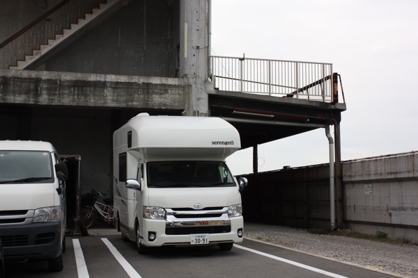 AC100V電源が利用出来るので、真夏の車中泊のエアコンや長期キャラバン途中のサブバッテリーの充電も可能です。駐車場には水道設備とダンプステーションが有るのでブラックタンクの排水処理も可能です。