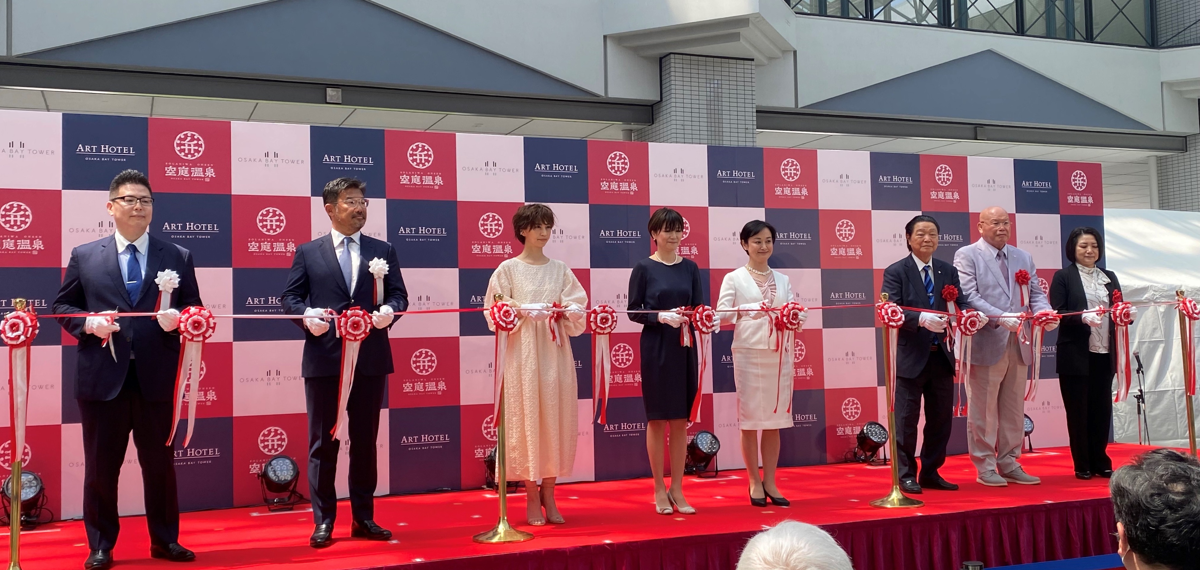 再生計画の第一弾として、2018 年 3月に株式会社マイステイズ・ホテル・マネジ メントが運営するフルサービス型ホテル「アートホテル OSAKA BAY TOWER」のリブランドオープン。 第二弾として、2019年2月に延床面積約5,000坪の天然温泉を有する関西最大級の都心型温浴テーマパーク「空庭温泉 OSAKA BAYTOWER」を開業し 、弁天町 エリアの再開発・再生を進めてきました。今回の商業施設・大規模リニューアルは、本再生計画の集大成として位置付けています。この記念すべき式典に、たくさんの方々がお祝いに駆けつけてくださいました。