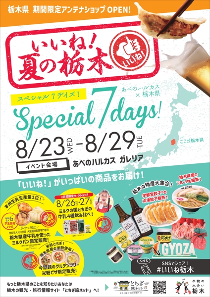 名 称 : 栃木県・期間限定アンテナショップ「いいね!夏の栃木 スペシャル7デイズ!」