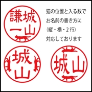 ハンコの丸い外枠に沿わせる形で、そこを散歩する猫の姿をデザインしています。