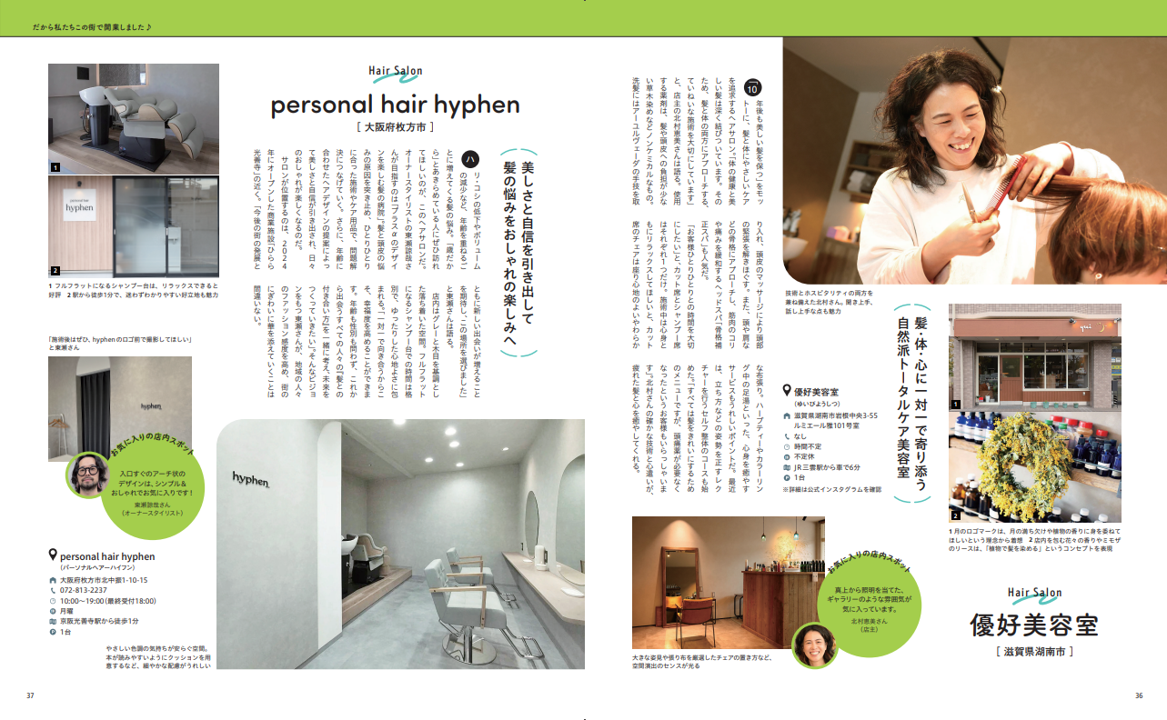 その魅力をもっと多くの方に知っていただきたい。その魅力を伝え、多くの方に知っていただき、ひいては地域の魅力を拡げたい。そんな思いから、『La-Chic(ラシク)』を創刊しました。創刊号の巻頭特集では、私たちの拠点である滋賀を中心に、カフェ、美容室、クリニックなど、地域を盛り上げる店舗と人々を紹介しています。