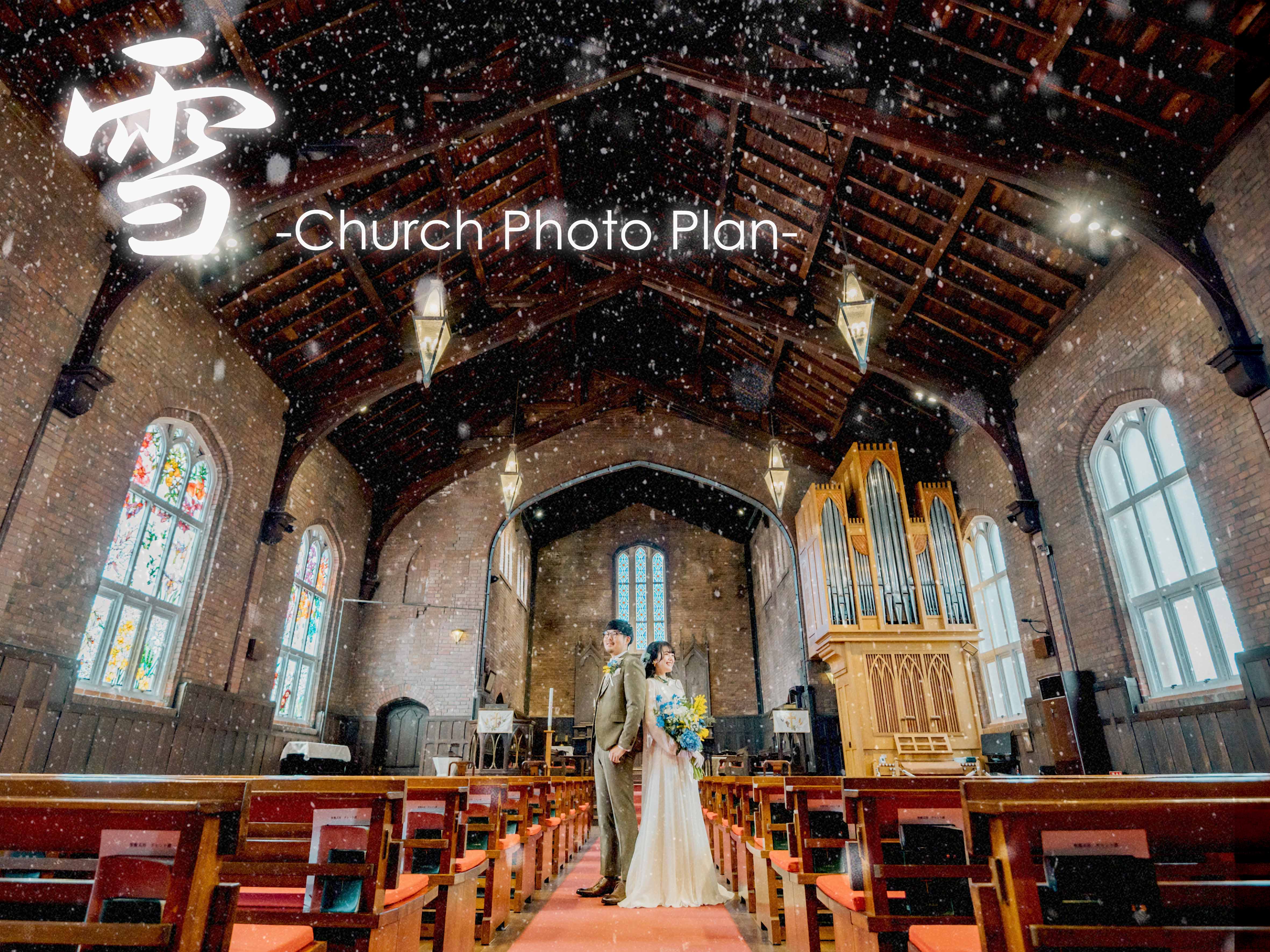 撮影は堀江、心斎橋エリアを中心に教会やスタジオ、ロケーションと選べる3パターンをご用意。冬の自然光が美しいロケーションで実施。雪や冬の空気を生かした透明感のある作品撮りが可能です。