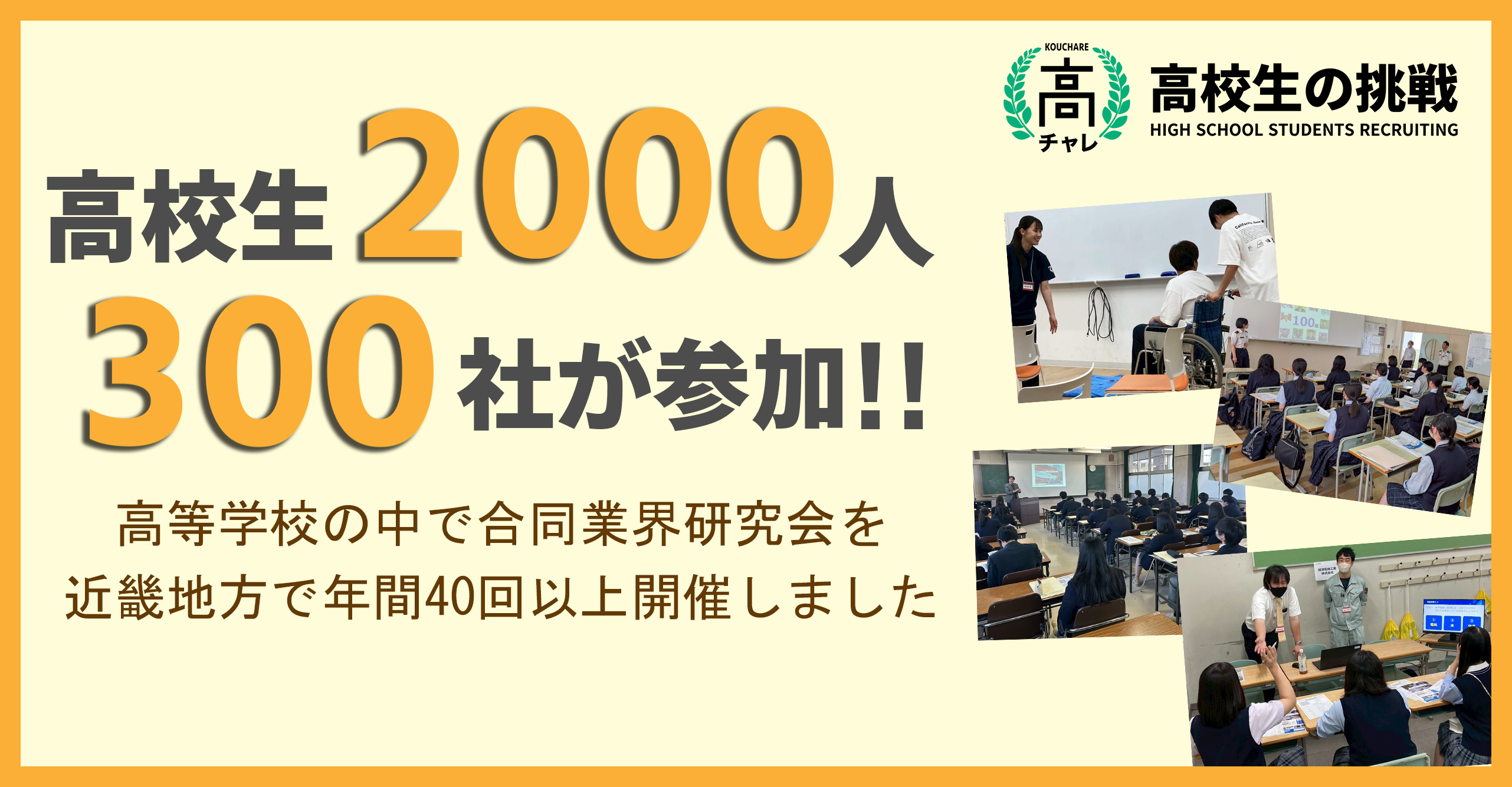 COFFISOが展開する『高チャレ』は、2025年に近畿地方の高等学校で累計46回の学内合同業界研究会を開催しました。参加した高校生は延べ2,100人以上、参加企業は延べ300社にのぼり、進路選択と人材採用をつなぐ場として広がりを見せています。