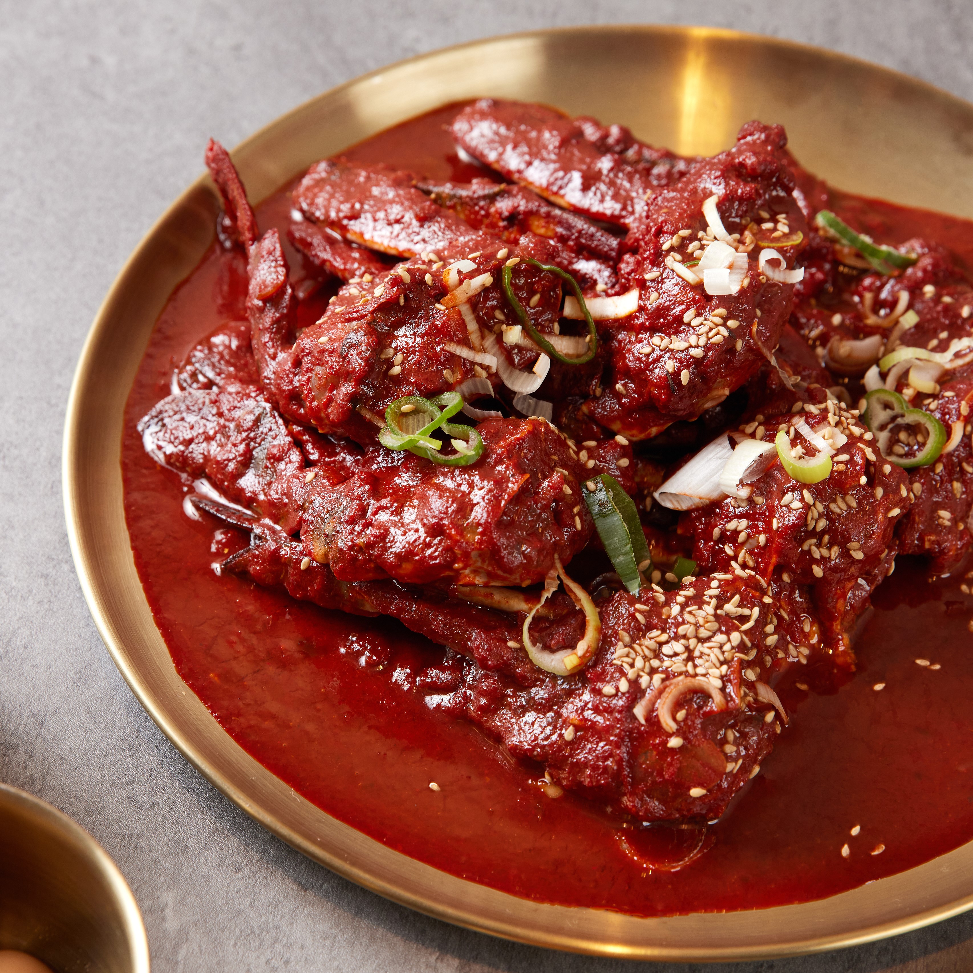 当店では、韓国・ソウルの本場の味をそのままご提供。看板メニューである「カンジャンケジャン」「ヤンニョムケジャン」には、韓国から仕入れた「鮮度」にこだわるワタリガニのメスのみを使用。下処理をしたワタリガニを、創業以来約30年変わらないタレに3日間漬け込みます。醤油ダレに漬けた「カンジャンケジャン」(2杯、8,800円~)は、ぷりぷりと引き締まった身から濃厚な甘みの卵まで、カニのうまみを存分にお楽しみいただける一品です。コチュジャンベースの甘辛いタレに漬け込んだ「ヤンニョムケジャン」(2杯、8,800円~)は、後引く辛さでご飯が止まらなくなる味付けです。ビニール手袋を付けて、やわらかくなったカニの殻を押して身を出しながらかぶりつくのはもちろん、カニミソと漬けダレが溜まった甲羅にご飯を入れて混ぜ、のりに巻いて食べる方法もおすすめです。