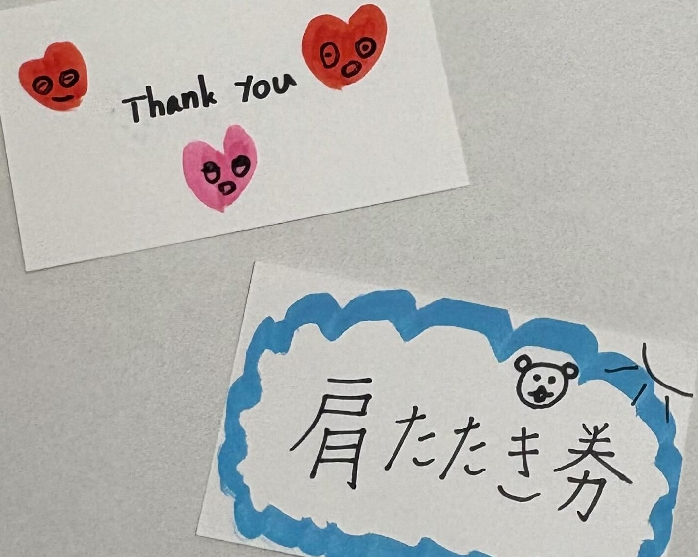 子どもは券を持ってお客様のほうへ行き、お客様がOKすれば肩たたきスタート