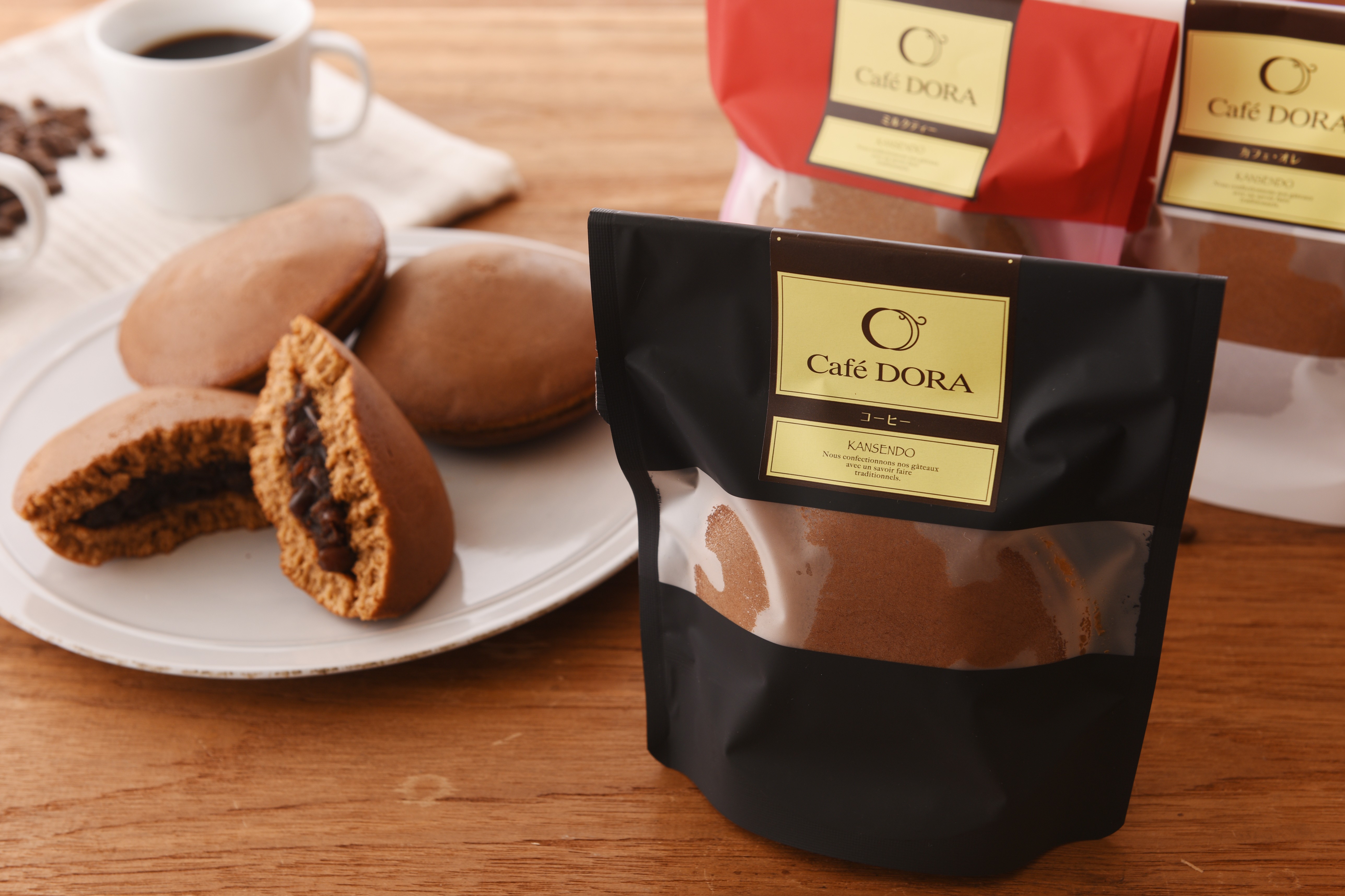 コーヒー・カフェオレ・ミルクティーの3種が楽しめるどら焼き。コーヒー豆の袋を思わせるスタイリッシュなスタンドパックでご用意いたします。