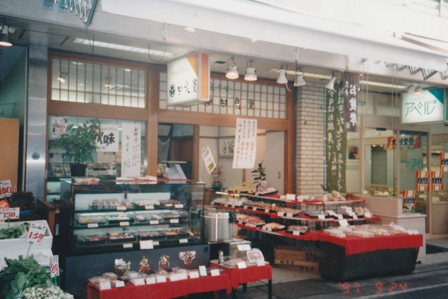 当店は、西成区・花園南市場で当社共同代表岸谷辰也の曽祖父と祖父が餅屋として創業しました。赤飯や和菓子を販売し、しばらくは順調でしたが、一時を境に味への不評が続いていたこともあり、辰也の父・正純が店を継ぐ頃には赤字に。辰也は21歳の頃に入社しましたが、その後も経営難は続き、レジにも釣り銭がなくなるほどで、車を売ったり保険を解約しながら借入返済や税金を払う日々が続きました。そんな中、近所で和菓子屋を営む同業者から「こんな商品を売っていてはダメ」と叱責され、餡炊きを基礎から教わるなど、一から和菓子の勉強をスタートしました。教えを基に商品構成をすべて変え、売り上げの下落を止めることができました。