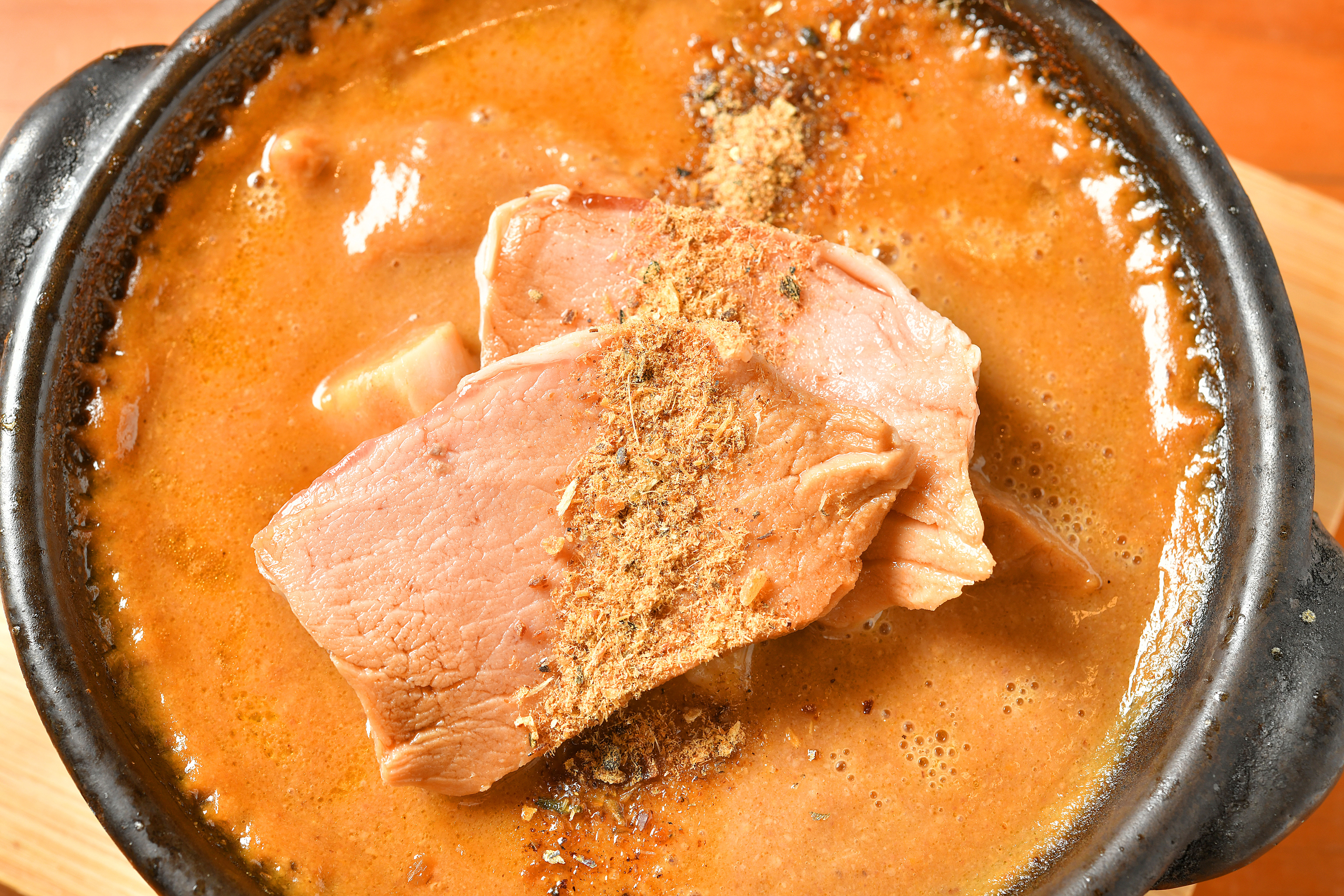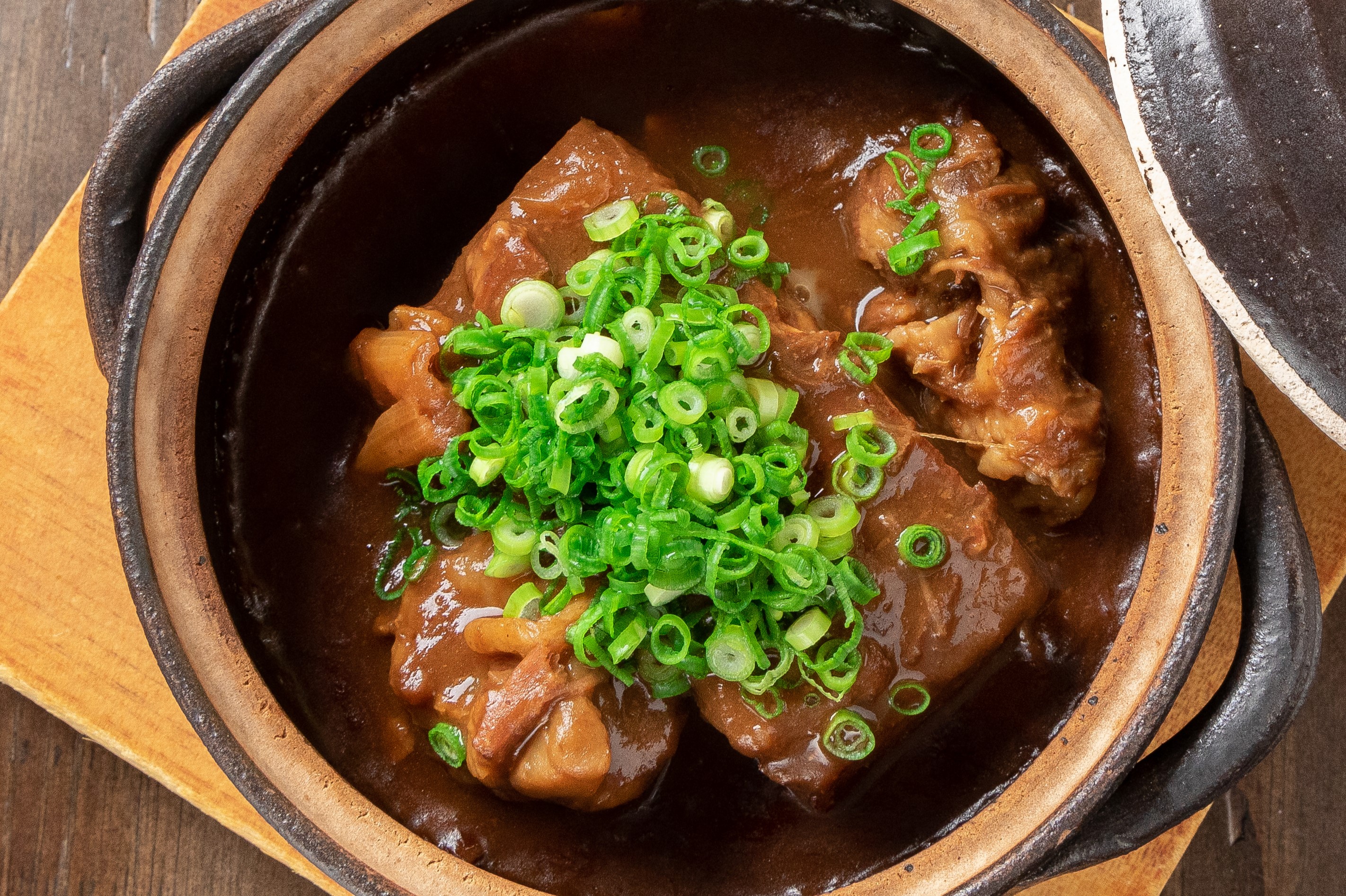 串かつと並ぶもうひとつの名物である煮込み料理も、ぎふやの大きな魅力のひとつです。鶏がらを中心に数種類の香味野菜を一気に炊き上げ、丸一日かけて旨味を凝縮させた「どろ炊き」は、どろどろになるまで煮込んだスープに、ホロホロとほどける豚ヒレと鶏チャーシューが絡む自慢の一品。また、和牛の上質なすじ肉を使用し、牛骨・牛テールからとった出汁と二種類の味噌を独自に調合した煮込み料理は、一口食べるとクセになるコク深い味わいに仕上げています。