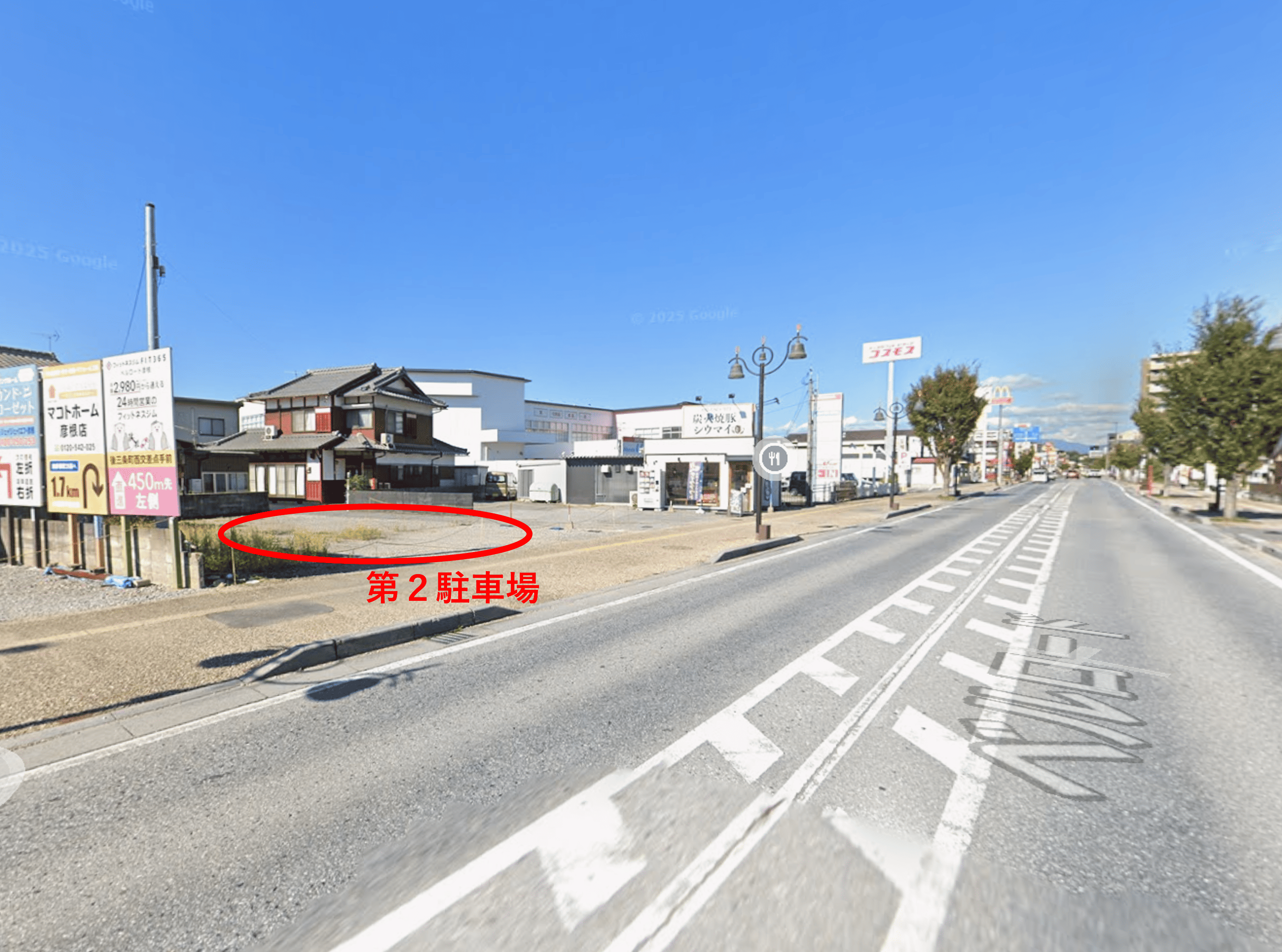 場所: 店舗より徒歩約2分の近隣地(旧炭火焼豚シウマイ様駐車場隣接地)