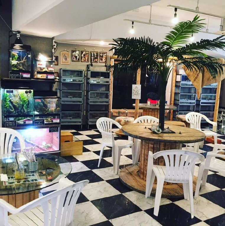 関西最大級の規模を誇り、関西で唯一、爬虫類とふれあいながら昆虫を食べられるカフェとして、現在は5店舗を展開(うち難波エリアに3店舗)しています。