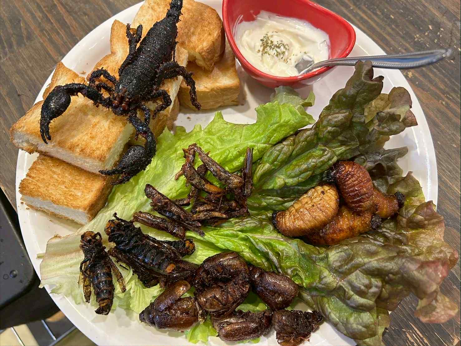 体験型コース以外にも、昆虫食に初めて挑戦する方からリピーターまで楽しめるメニューを提供しています。味の例としては、タガメは青りんごのようなフルーティーな風味、サソリはエビやカニなど甲殻類に近い食べやすい味、グソクムシは、イセエビと言っても過言ではないほどの美味、と自信をもっておすすめしています。