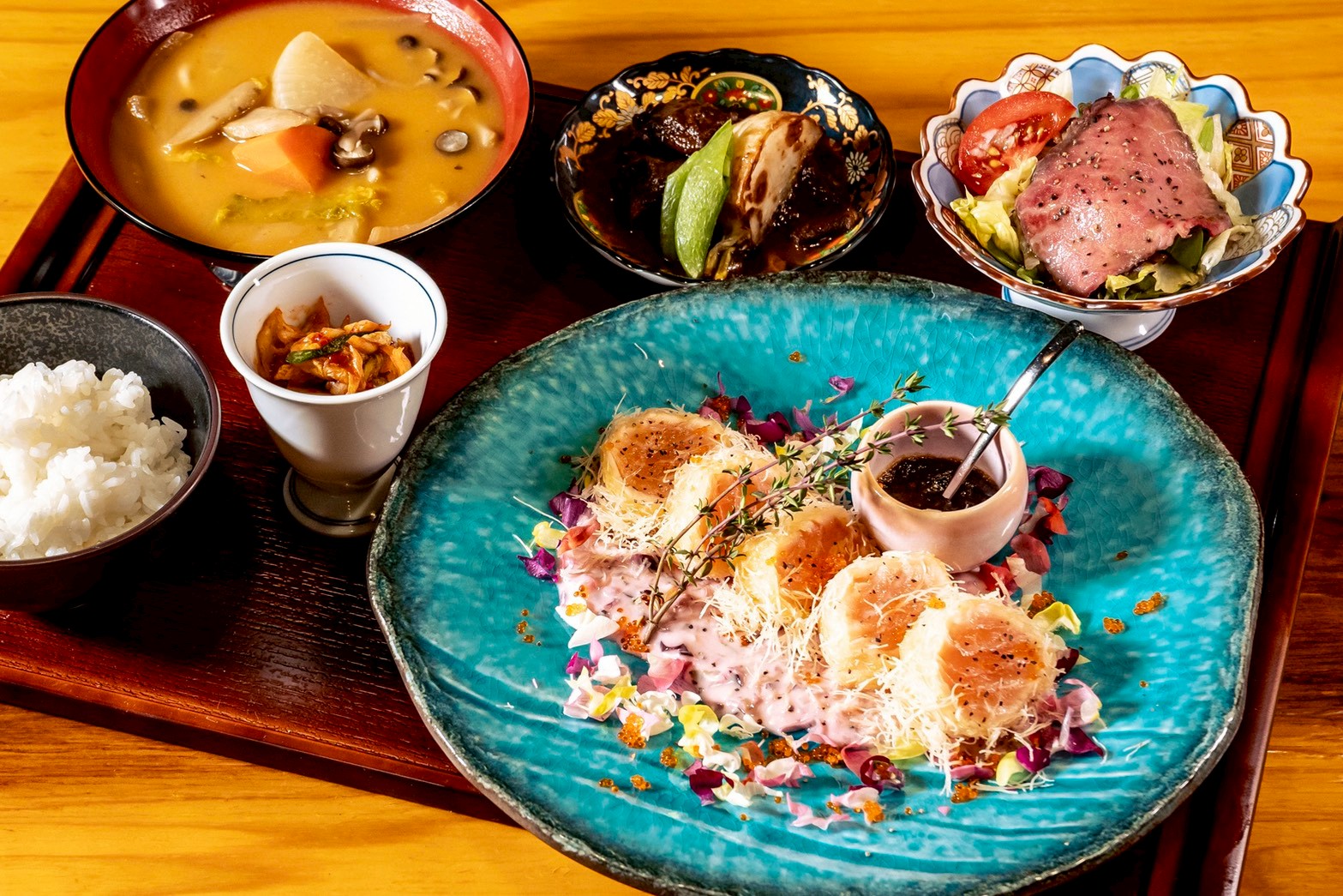 ※①②には、ご飯、自家製キムチ、今月のスープ、旬彩の小鉢2品付き