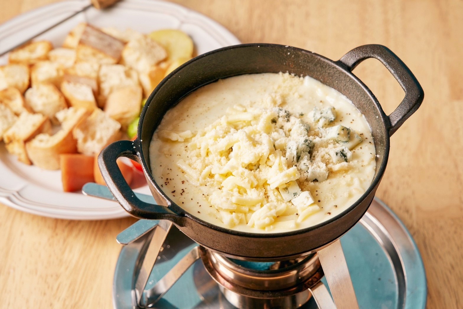 シカゴピザ、チーズフォンデュなどの創作チーズ料理から肉料理、デザートまで、約70種類そろえています。