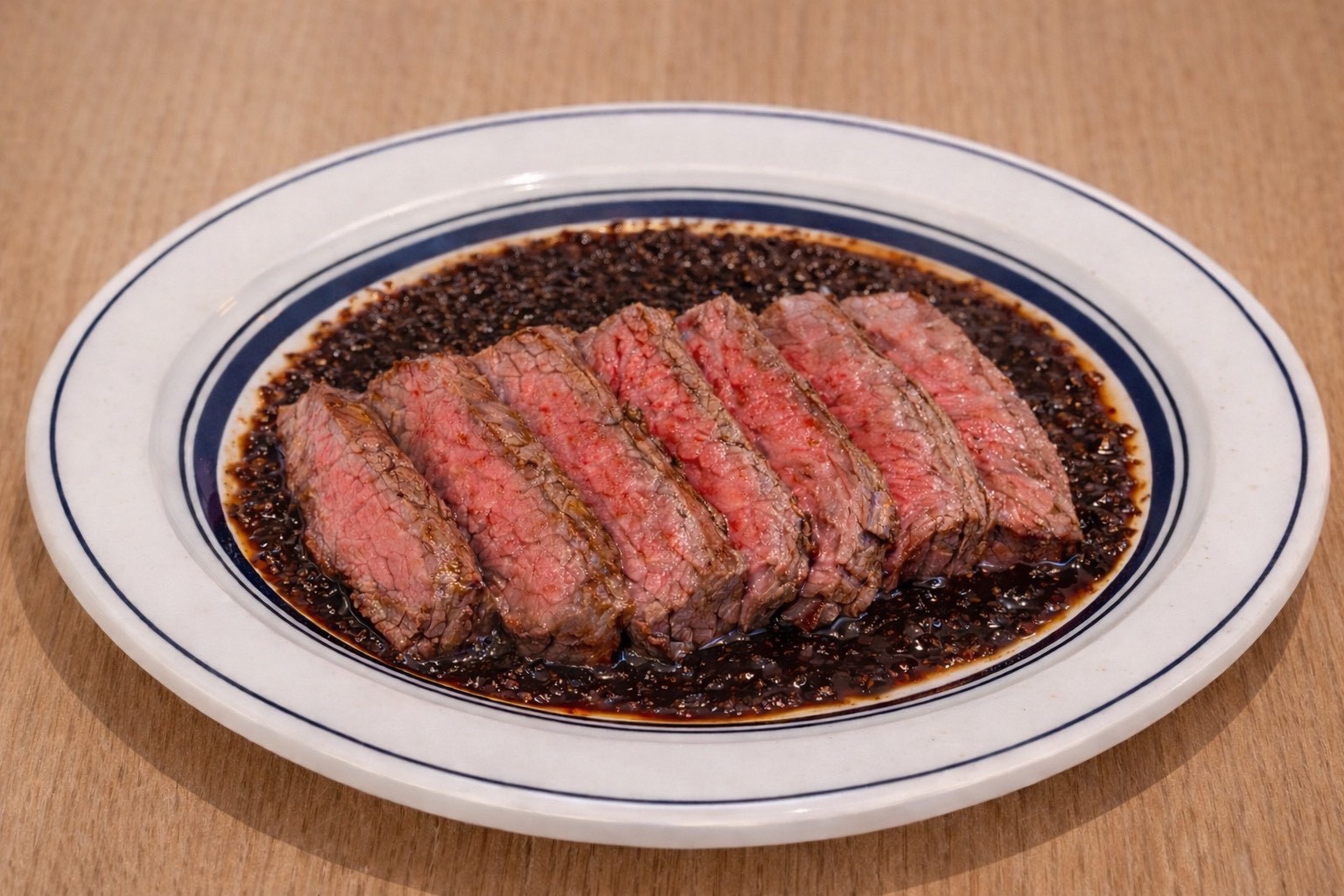 ・厳選牛赤身のステーキ 赤ワインソース(2,178円)