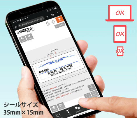 スマホ・PC対応のデザインシミュレーターで、テンプレートを選び文字を