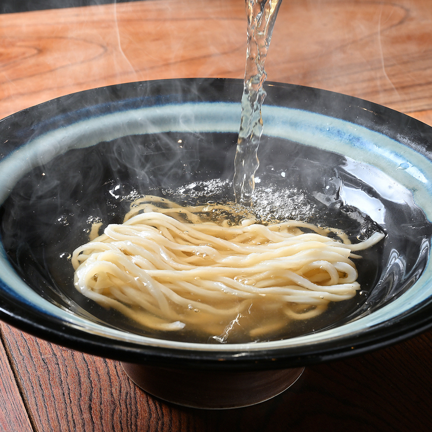 新宿東口店は、“すさび湯”7店舗目にして初となる「うどんメニュー」を販売いたします。関西ならではの出汁文化を味わっていただける一杯として、昆布・カツオ・うるめ・サバを使用し、時間をかけて丁寧に旨味を引き出した関西出汁に、約1週間熟成させたかえしを合わせ、奥行きのある味わいに仕上げました。定番のかけうどんから創作系まで全32種、トッピングは全16種を揃え、時間帯や気分に合わせて楽しめる一杯をご提供いたします。さらに、厳選した小麦を100%使用し、創業70年の製麺所が独自に配合した生地を、職人が丁寧に手打ち。絹のような艶としなやかなコシ、熟成によって生まれるまろやかな旨味が特徴の、すさび湯だけのオリジナル手打ちうどんは、「かけ」「ぶっかけ」の2種でご提供いたします。