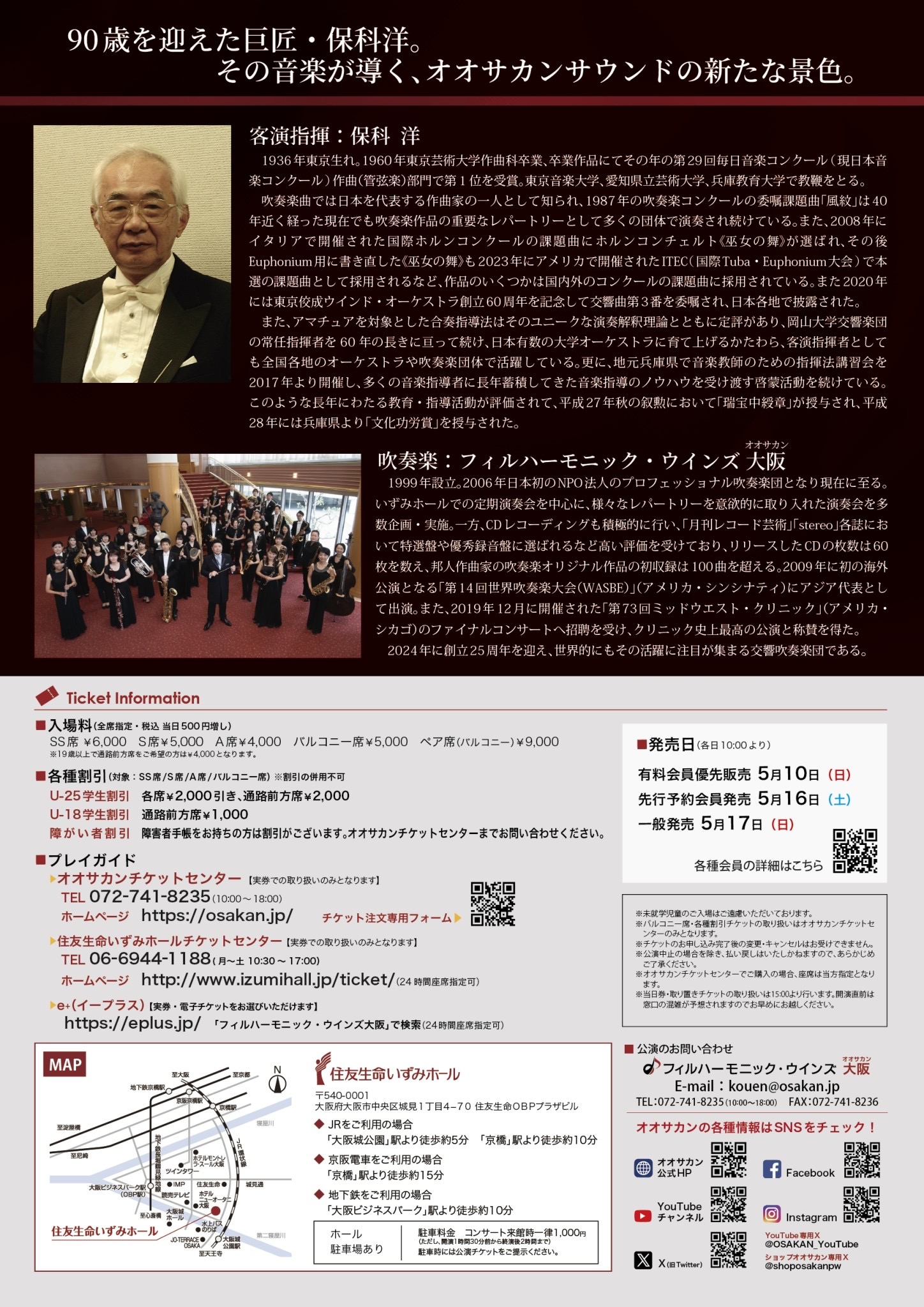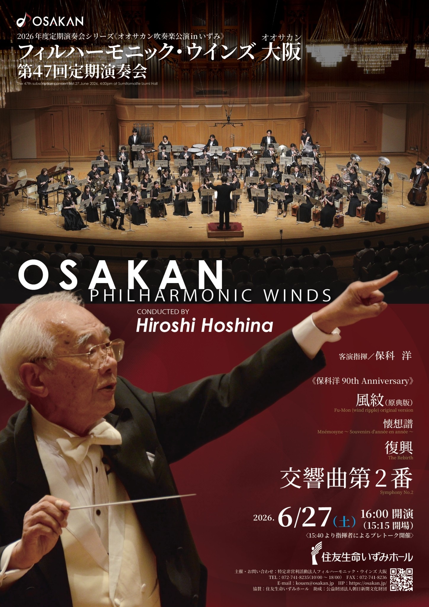 オオサカン第47回定期演奏会は、日本の吹奏楽界を牽引してきた保科洋氏を客演指揮に迎えて開催いたします。