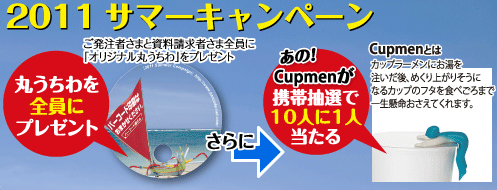 話題のCupmenが10人に1人当たる!ご発注の皆様全員にオリジナル丸うちわプレゼント!バーコード屋さんサマーキャンペーン開始。